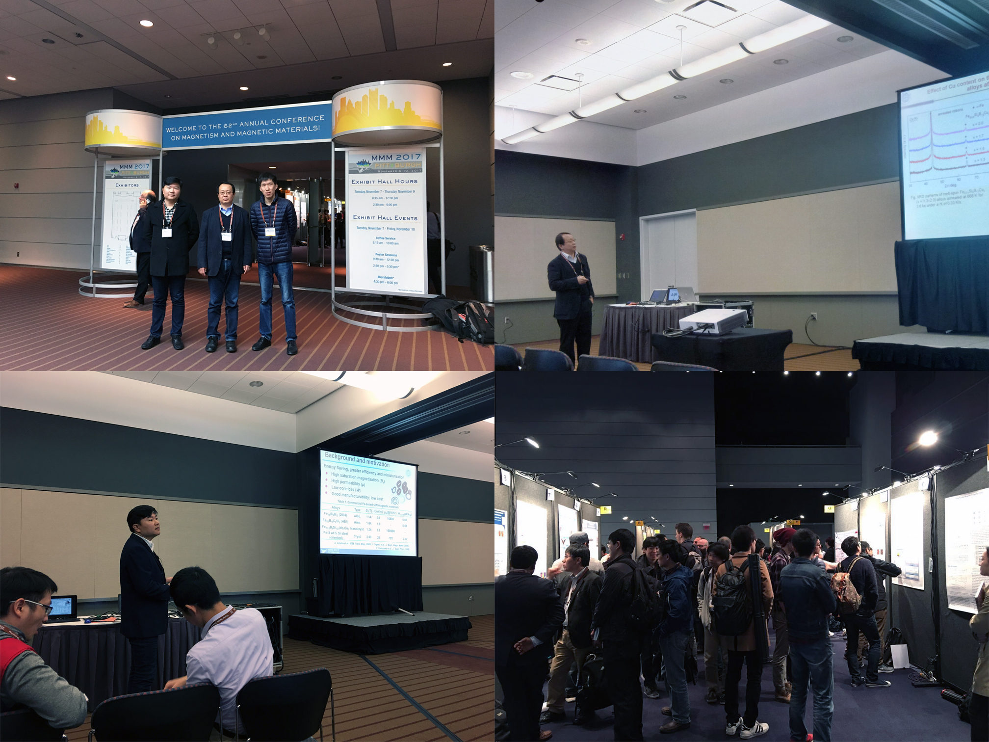 2017国际磁学与磁性材料年会(2017 Conference on Magnetism and Magnetic Materials, 2017 MMM)于2017年11月6日至10日在美国匹兹堡市召开,研究室张伟教授、李艳辉副教授和我组博士生贾行杰同学参加了此次会议并作分会口头报告。