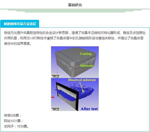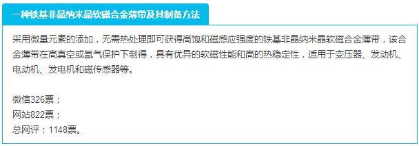 据统计,本次年度中国非晶材料十大进展活动在两家平台得到了近3万人关注。其中,第一轮微信投票1494人参与,网站1192人参与。第二轮投票,微信方面1004人参与,网站方面3205人参与。网评投票选出前十名分布如下: